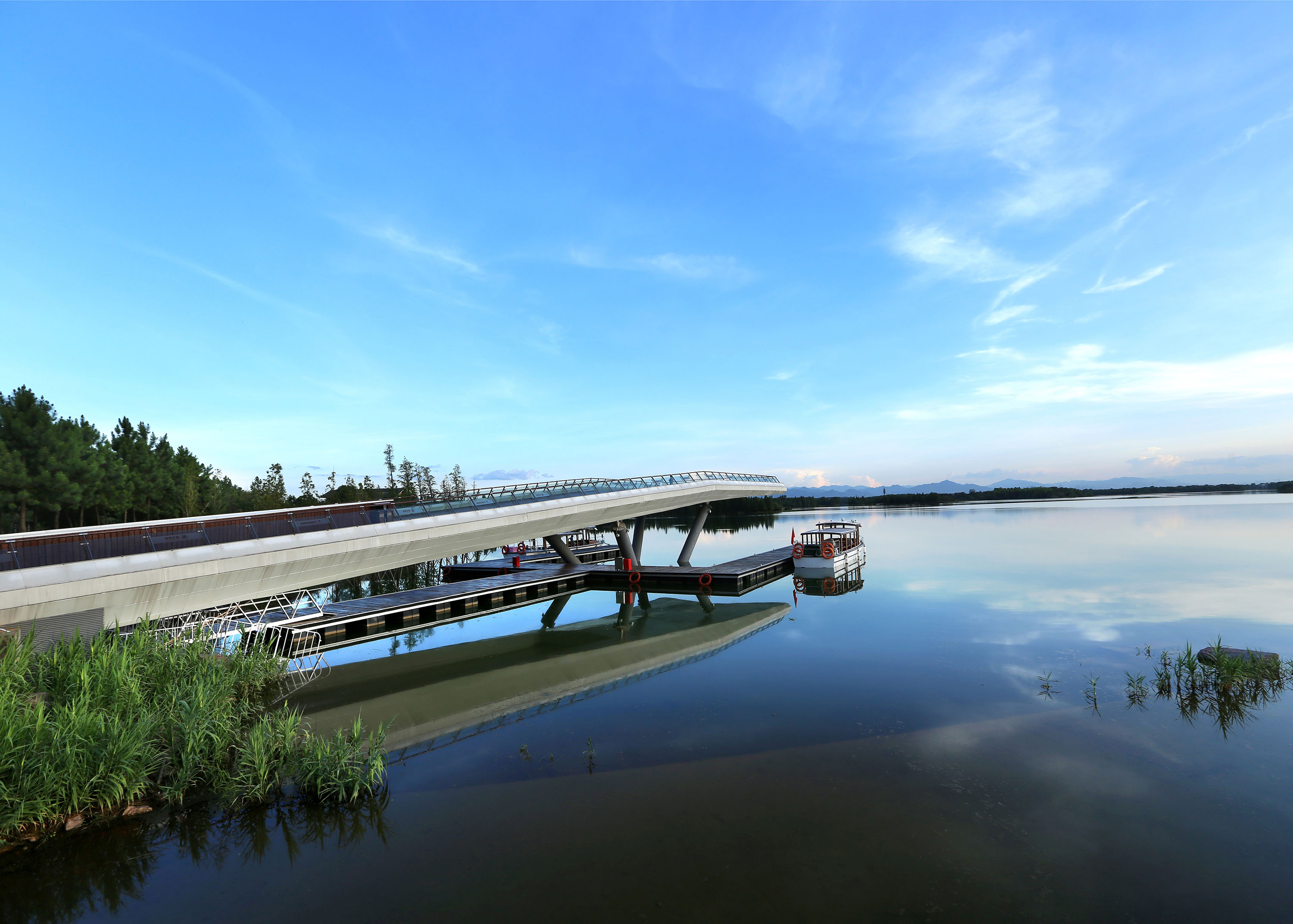 浙江兰湖旅游度假区为省级旅游度假区,总面积约24平方公里,总体规划由同济大学吴志强院士主持主创,其中启动区面积87公顷,为度假区入口及一期开发建设区,由卢仲良担任项目总负责,参与了启动区从详细规划方案到景观、建筑、市政施工图的设计全过程。